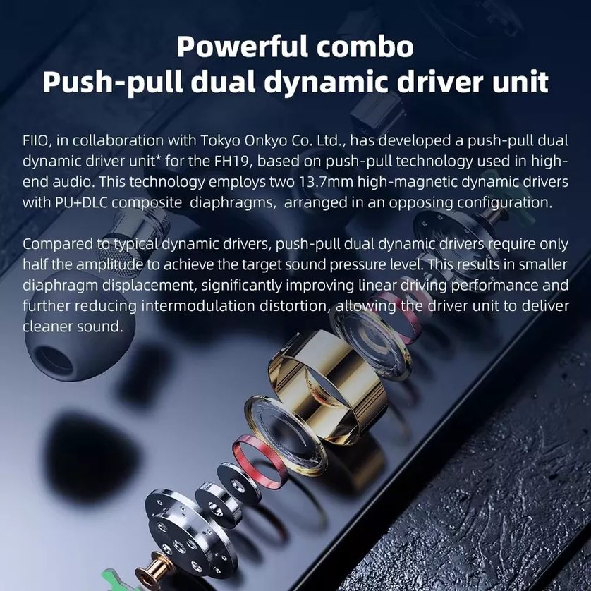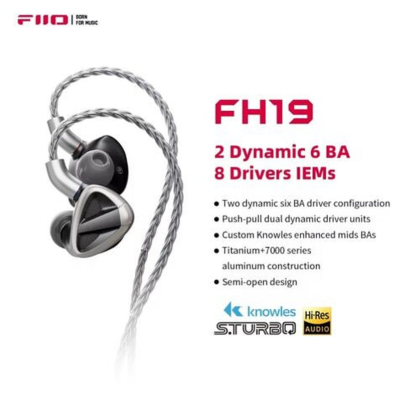 Estos son hasta el momento los audífonos más avanzados de la prestigiosa marca FiiO. Los nuevos FH19 cuentan con dos drivers dinámicos acomodados en Tandem con magnetos opuestos (sistema Push-Pull) para un bajo extraordinariamente profundo y atacante así como 6 drivers de Amrmadura Balanceada para un sonido preciso y cristalino y con una separación instrumental impresionante.