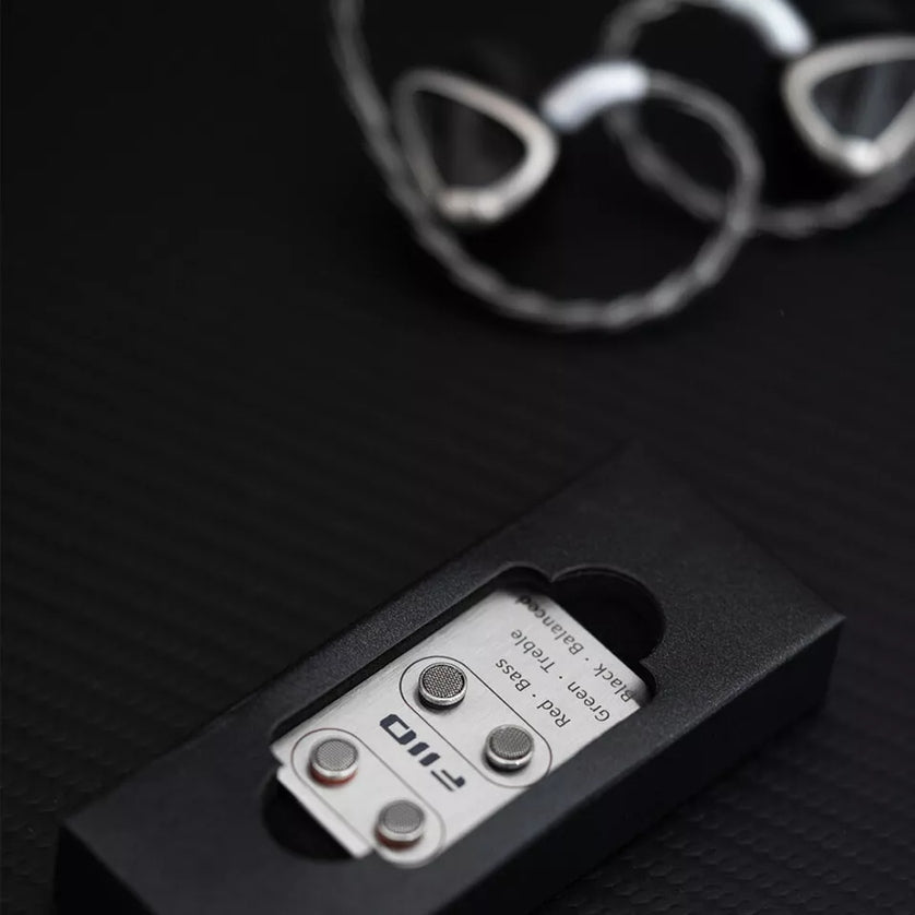 Los nuevos FiiO FH19 cuentan con tres filtros de sonido intercambiables, dónde cada filtro de sonido tiene su propia amortiguación y densidad, lo que te permite elegir entre tres firmas de sonido diferentes: filtro de sonido rojo, enfoque de graves dinámico mejorado; filtro de sonido negro; Timbre claro, transparente y equilibrado; filtro de sonido verde enfoque de agudos detallado de alta resolución.