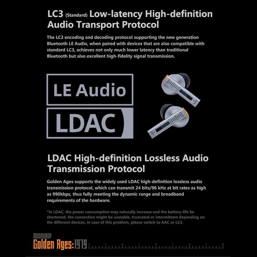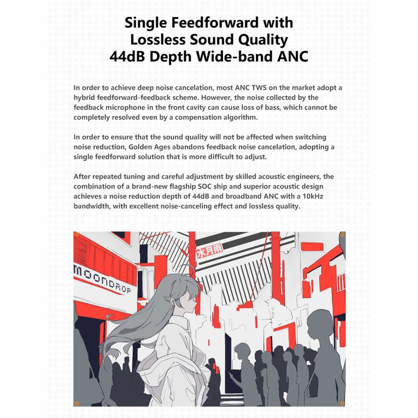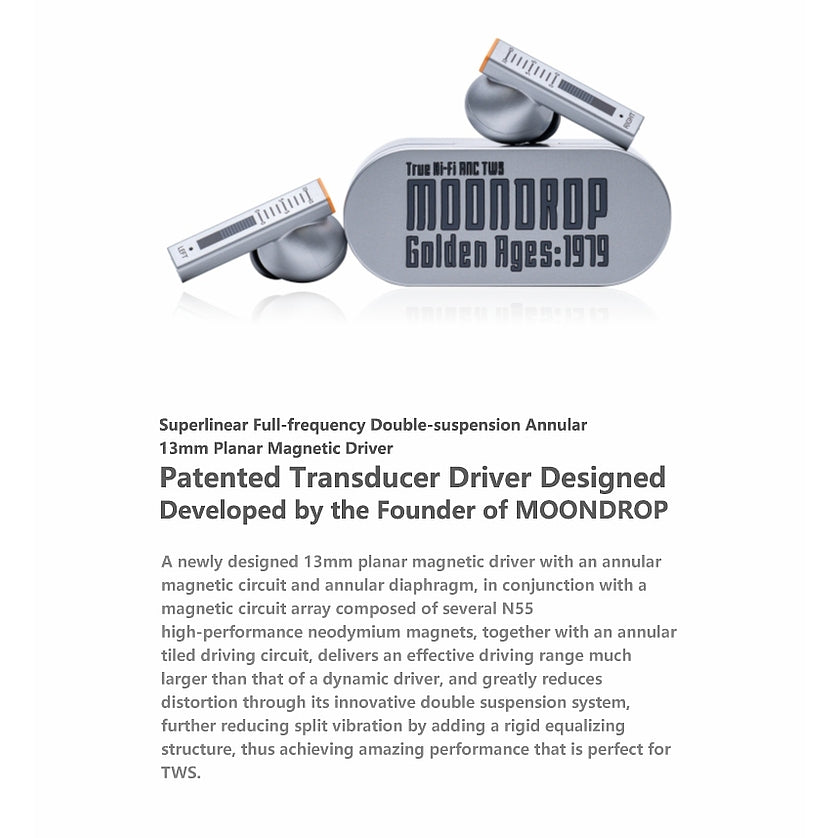 Los auriculares Moondrop Golden Ages son audífonos True Wireless que cuentan con la última generación en audio de Alta Resolución al integrar drivers Magnéticos Planares que a diferencia de los drivers tradicionales (dinámicos/Armadura Balanceada) vibran a velocidades más altas y en un mayor rango dinámico, produciendo un sonido mucho más preciso, altamente definido y con una distorsión cercana al cero absoluto.