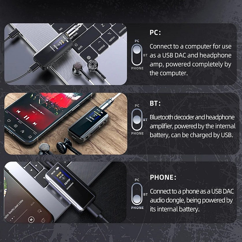 El nuevo BTR13 cuenta con un interruptor de tres posiciones PC/BT/PHONE, lo que le permite cambiar rápidamente entre la tarjeta de sonido de la computadora, la decodificación Bluetooth y los modos de teléfono móvil. Esto no solo elimina la molestia de cambiar entre diferentes dispositivos, sino que también satisface sus necesidades de múltiples dispositivos y escenarios con una sola unidad.