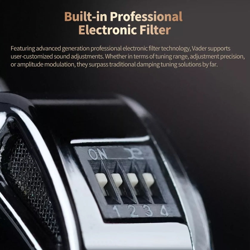 Con tecnología de filtro electrónico profesional de generación avanzada, Vader admite ajustes de sonido personalizados por el usuario, superando las soluciones de sintonización tradicionales en rango de sintonización, precisión y modulación de amplitud.