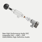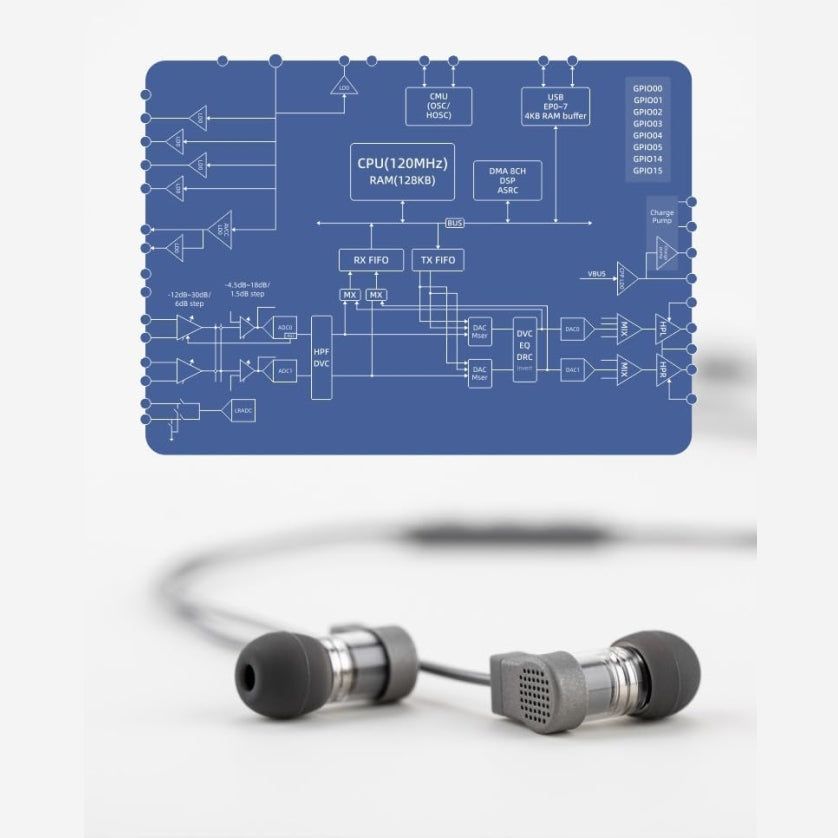 Los nuevos Moondrop Quarks 2 ofrecen un audio de alto rendimiento SOC integrado DAC + AMP + DSP 32 bits/384 khz audio de alta resolución ya que utilizan un nuevo chip SOC de audio USB de alto rendimiento de 40nm con CPU integrada, RAM, DSP y amplificador de decodificación.