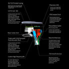 Su cable es de grado profesional y fue desarrollado en colaboración con FLARE Audio e integra 6 núcleos (SCCW) de cobre monocristalino forrados en plata (SPOCC) que anula eficazmente la interferencia electromagnética y aporta una calidad de sonido de fondo más pura.