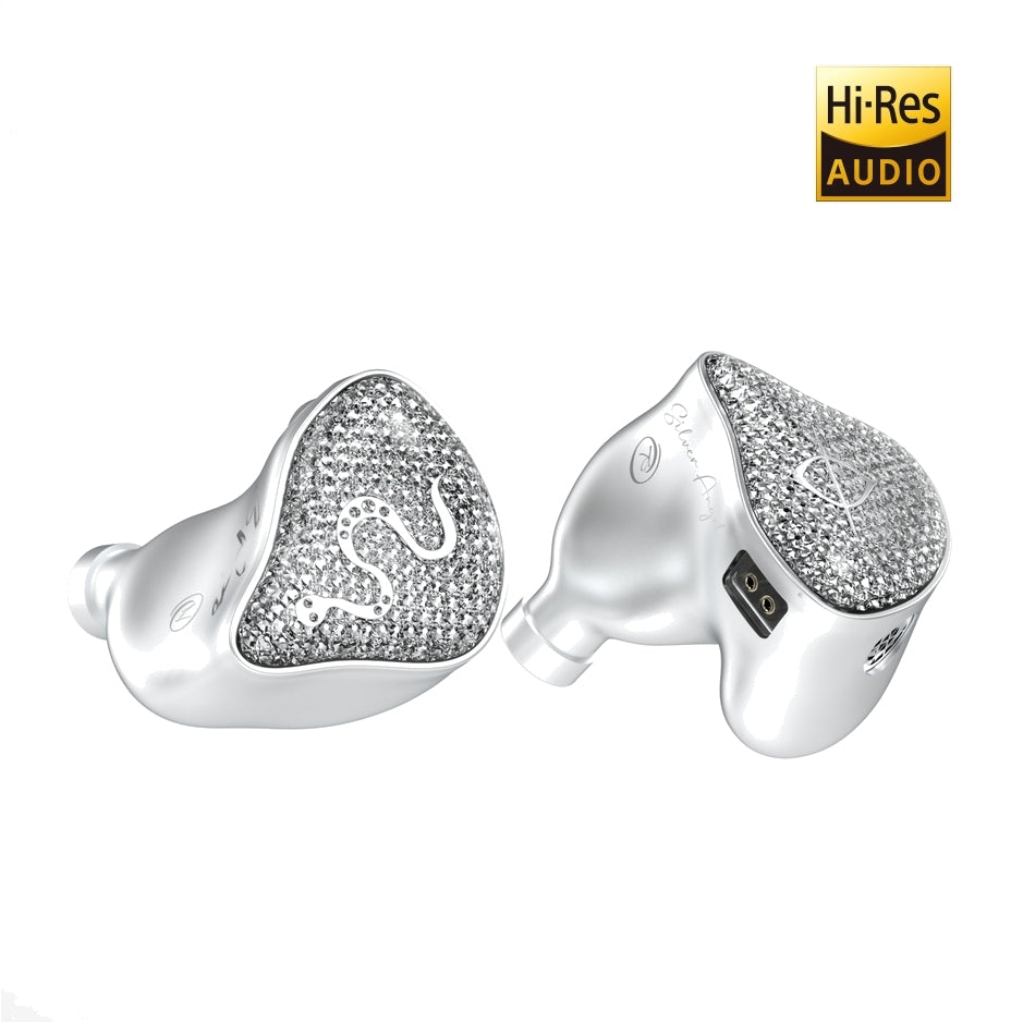 Los habitáculos de sus poderosos drivers de 11.4mm están hechos de resina y con un acabado metálico en la parte interior y por la parte exterior una capa de resina transparente cubre un hermoso acabado diamantado para un look espectacular.
