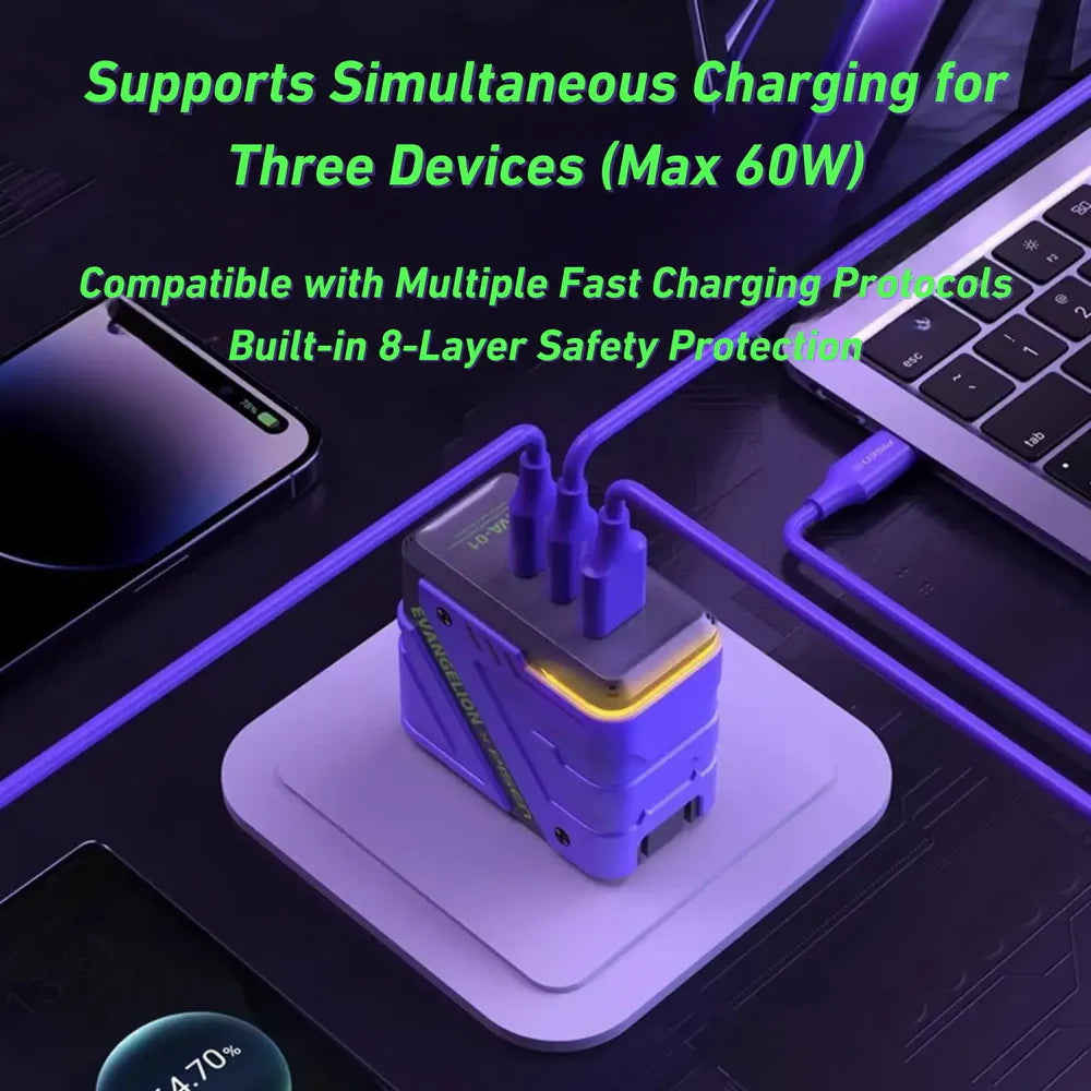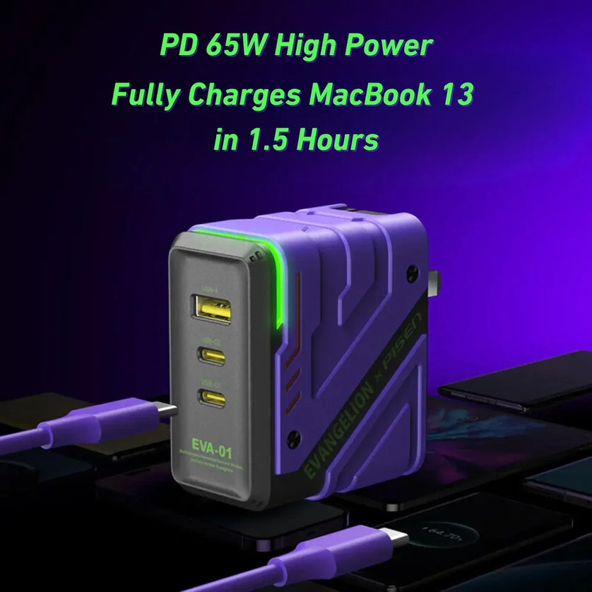 El nuevo cargador de carga rápida de 65Watts EVA-01 es una colaboración con la aclamada serie de animé EVANGELION.