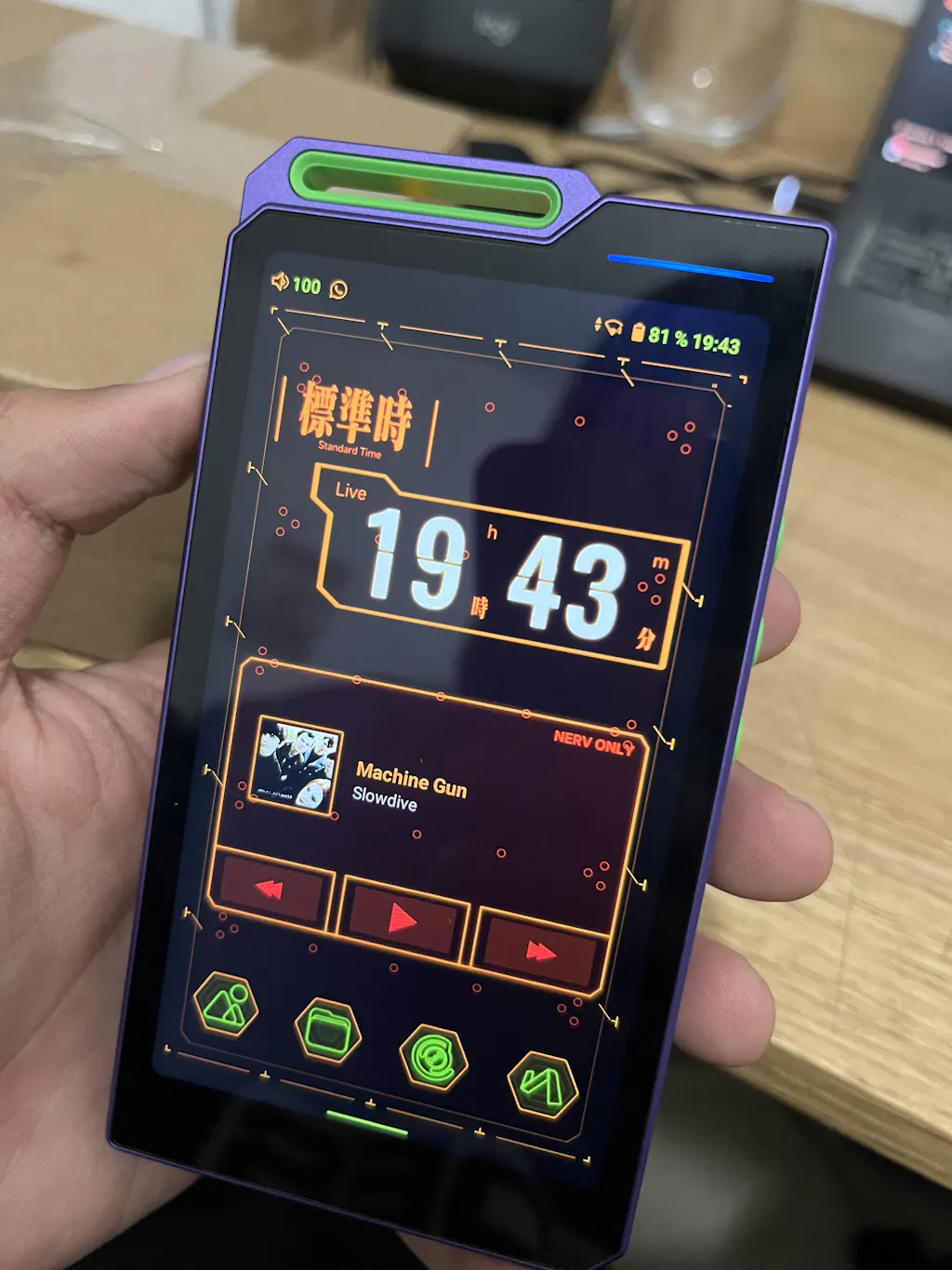 En este caso, la edición especial de Evangelion cuenta con los colores distintivos del Mecha de Batalla EVA-01, una interfase especial también de la mano de la saga de animé, una ecualización especial más poderosa y un gigabyte adicional de memoria RAM, también tiene el doble de capacidad interna (más la ya conocida bahía para tarjetas microSD de hasta 2TB) y un lanyard personalizado con logos de la serie.