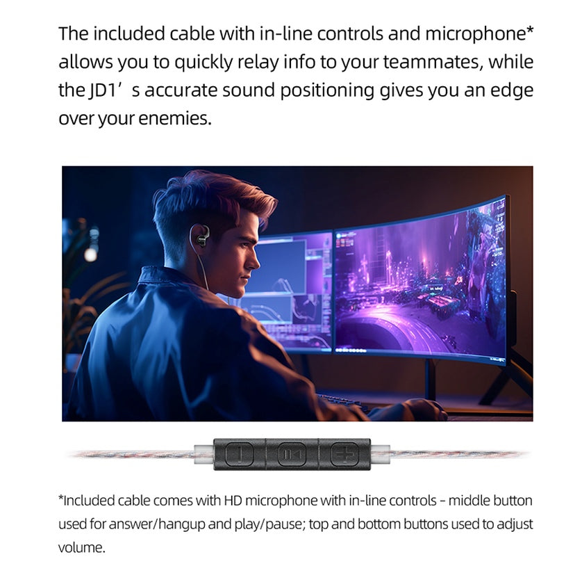 Audífonos Hi-Res de Ergonomía Monitor con Manos Libres FiiO JD1 - Black