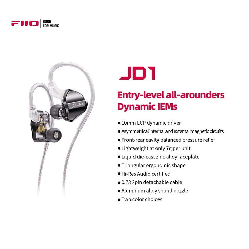 Audífonos Hi-Res de Ergonomía Monitor con Manos Libres FiiO JD1 - Crystal