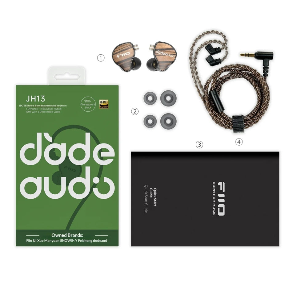 Audífonos Híbridos Hi-Res de 3 Drivers por lado FiiO JH13 - Black Wood