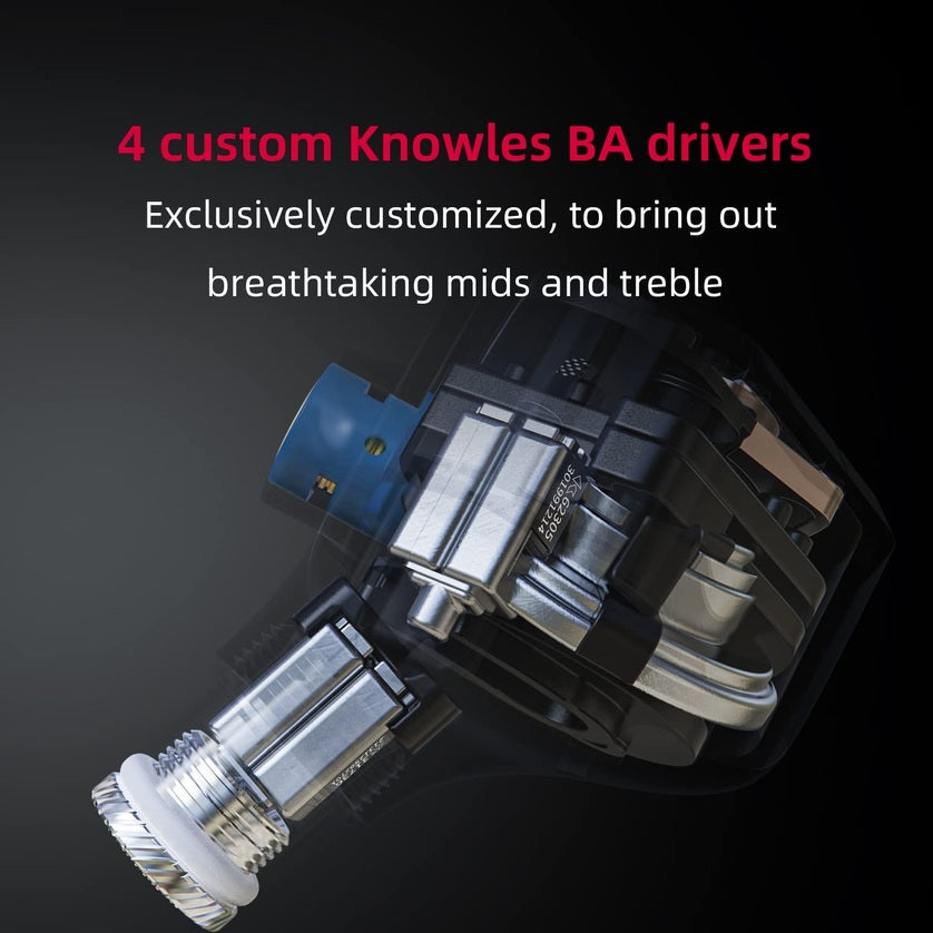 Los nuevos audífonos Híbridos FH7s de FiiO cuentan con 4 drivers (bocinas) de armadura balanceada para una reproducción de medios y altos impecable, así como un poderoso driver de 13.6 mm para un bajo poderoso potenciado por la tecnología de FiiO denominada "Turbo Bass"
