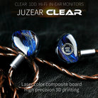 Los Juzear Clear utilizan una nueva configuración de driver dinámico de 10 mm que consiste en un diafragma LCP compuesto por un circuito magnético de doble cavidad, siintonizado profesionalmente para una experiencia auditiva inmersiva.