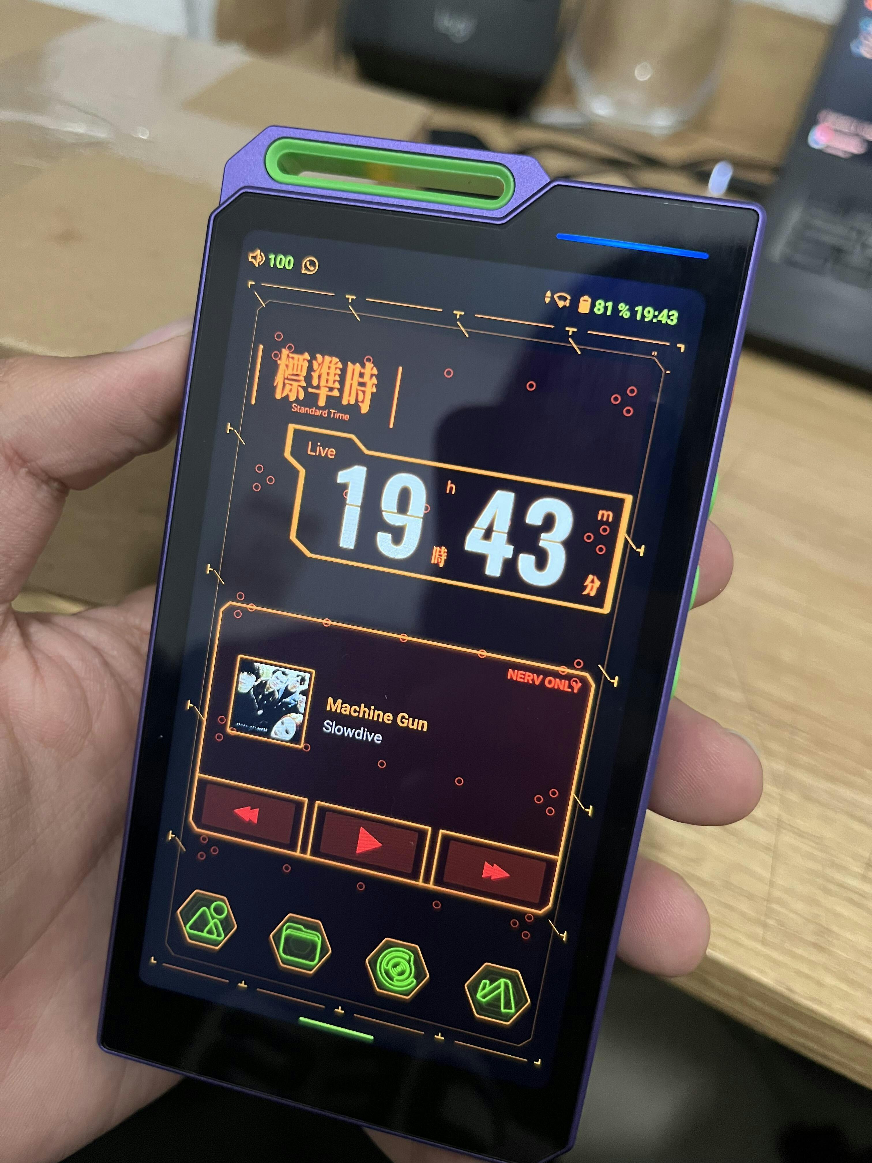 En este caso, la edición especial de Evangelion cuenta con los colores distintivos del Mecha de Batalla EVA-01, una interfase especial también de la mano de la saga de animé, una ecualización especial más poderosa y un gigabyte adicional de memoria RAM, también tiene el doble de capacidad interna (más la ya conocida bahía para tarjetas microSD de hasta 2TB) y un lanyard personalizado con logos de la serie.
