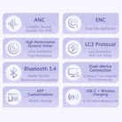 Los Honkai Star Rail Robin integran tecnología Activa de Cancelación de Ruido con sistema híbrido que alcanza una profundidad de hasta -40dB y audio TRANSPARENTE para poder usarlos en exteriores y estar alerta de lo que suceda a tu alrededor. Así mismo los Robin tienen tecnología ENC para llamadas manos libres claras y de gran calidad.