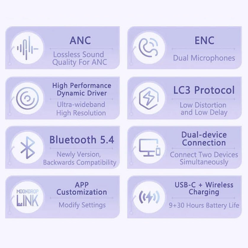 Los Honkai Star Rail Robin pueden ser configurados a tu gustoa través de la aplicación de Moondrop LINK. Cuentan con tecnología Bluetooth 5.4 multipunto de última generación para una conexión estable y que consume muy poca energía de tu Smartphone y son compatibles con los codecs HiRes LDAC y LC3.