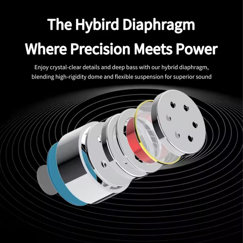 Usando una nueva tecnología de diafragmas híbridos, escucha cada nota con una claridad excepcional. El diafragma rígido garantiza agudos rápidos y precisos, mientras que el diafragma flexible ofrece graves impactantes sin perder medios. Perfecto para audiófilos y gamers, este IEM crea un sonido rico y equilibrado que es limpio, detallado y agradable en todas las frecuencias.