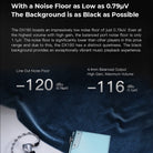 El DX180 cuenta con un nivel de ruido impresionantemente bajo de sólo 0,79 uV. Incluso al volumen más alto con alta ganancia, el ruido mínimo del puerto equilibrado es de sólo 1,1 μV. El nivel de ruido es significativamente más bajo que el de otros reproductores en este rango de precios y, debido a esto, el DX180 tiene un silencio distintivo. El fondo negro proporciona una experiencia de reproducción de música excepcionalmente vibrante.