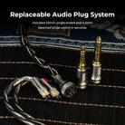 Su sistema Q-Lock de cable cuenta con puntas intercambiables de 3.5mm estándar y de 4.4mm para audio balanceado. Su cable LEO utiliza cables de cobre monocristalino,  chapados en plata de alta pureza (22 AWG) para una pérdida mínima de señal y transmisión de sonido pura.