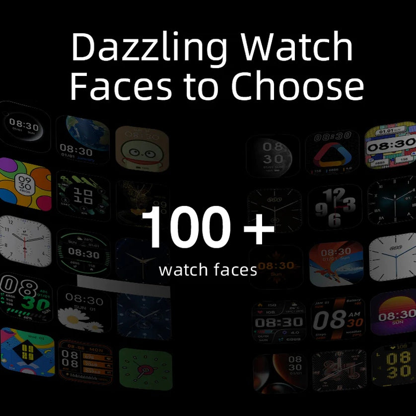Gran pantalla HD TFT de 2.02 pulgadas con una resolución de 320*385 pixeles y más de 100 carátulas diferentes para que siempre tenga tu smartwatch un diseño moderno y de vanguardia (carátulas disponibles a través de la aplicación de QCY).