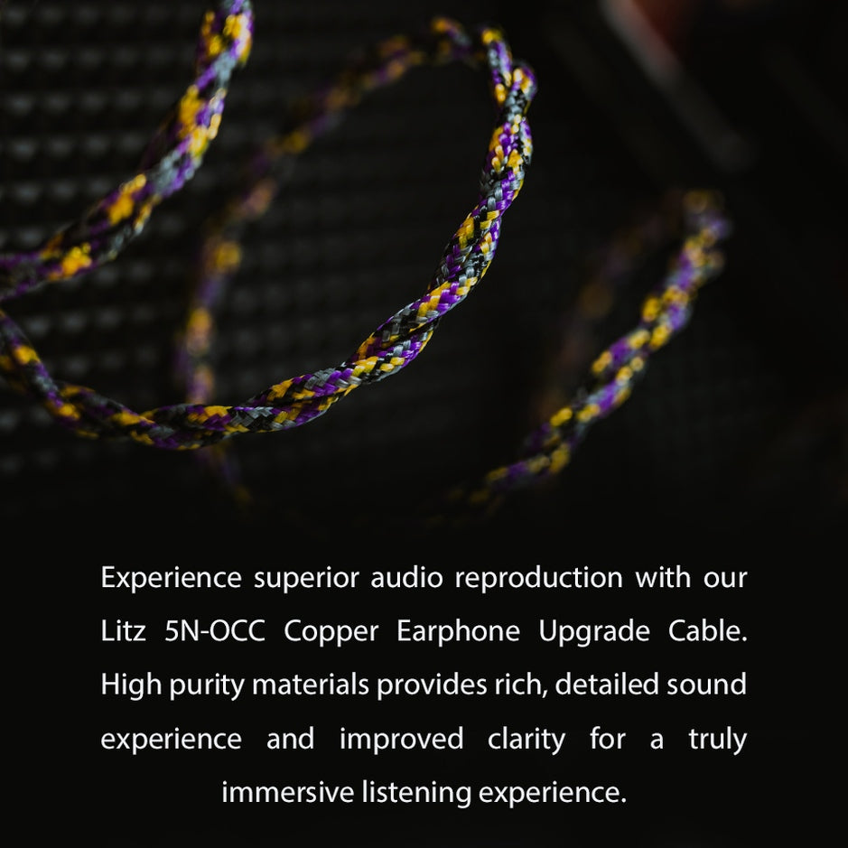 Está diseñado para salidas de Audio Balanceado y es de tipo desmontable con una construcción de 2 hilos y 5 hebras de 60 Micronúcleos hechos de cobre. El cable cuenta con conectores superiores de 2 pines de (0.78mm) y al otro extremo un Plug de 4.4mm cubierto en oro.