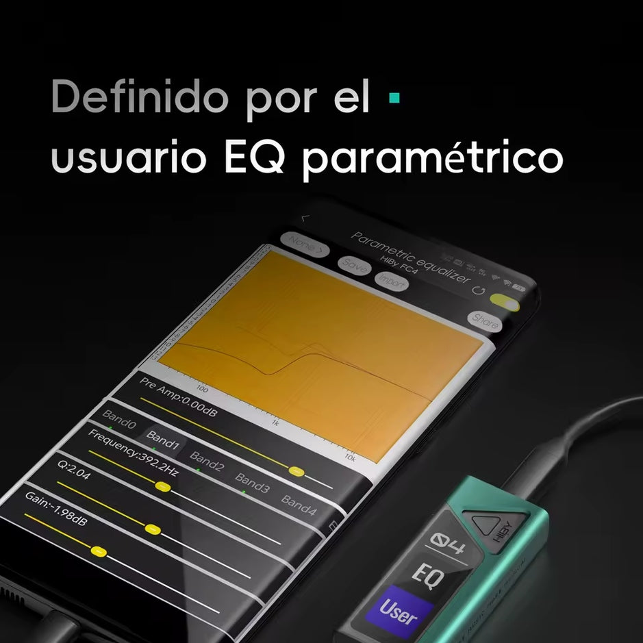 Así mismo el HiBy FC4 Cyborg Dongle DAC integra un innovador ecualizador paramétrico con el que podrás hacer ajustes y mejorar de manera radical la calidad de reproducción del audio de tu Smartphone. El Cyborg Dongle DAC FC4 cuenta también con salida de audio estándar de 3.5mm y de 4.4mm para audio balanceado.