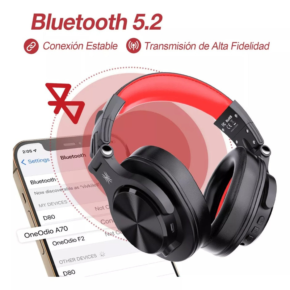 Audífonos HiRes Bluetooth+Wired DJ Style OneOdio A70 - Black