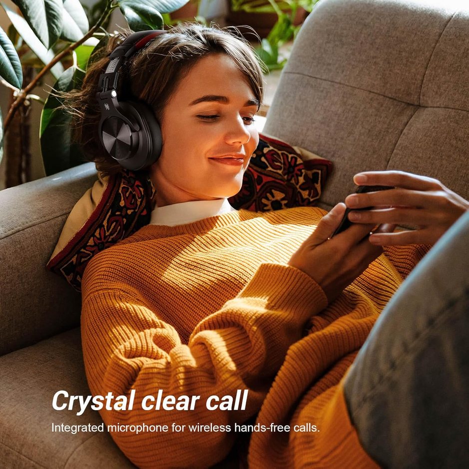 Ponte los OneOdio A70 sobre la oreja y experimenta cada detalle de tu música con una calidad impresionante. Su sistema Bluetooth está integrado por un poderoso chip BT 5.2 de baja latencia y bajo consumo de energía para unas sorprendentes 72 horas de reproducción en modo inalámbrico, pero también son de tipo crossover por lo que simplemente podrás cambiar al modo con cable utilizando los dos cables de audio incluidos (de 6,35 mm a 3,5 mm y de 3,5 mm a 3,5 mm) y tus auriculares nunca se quedarán sin energía.