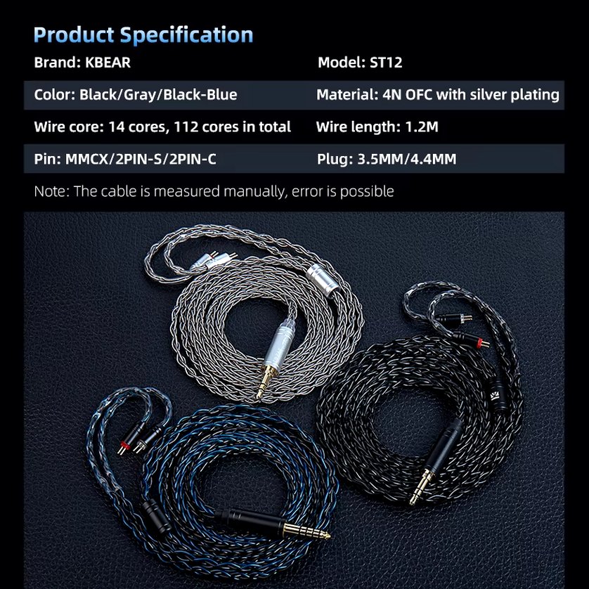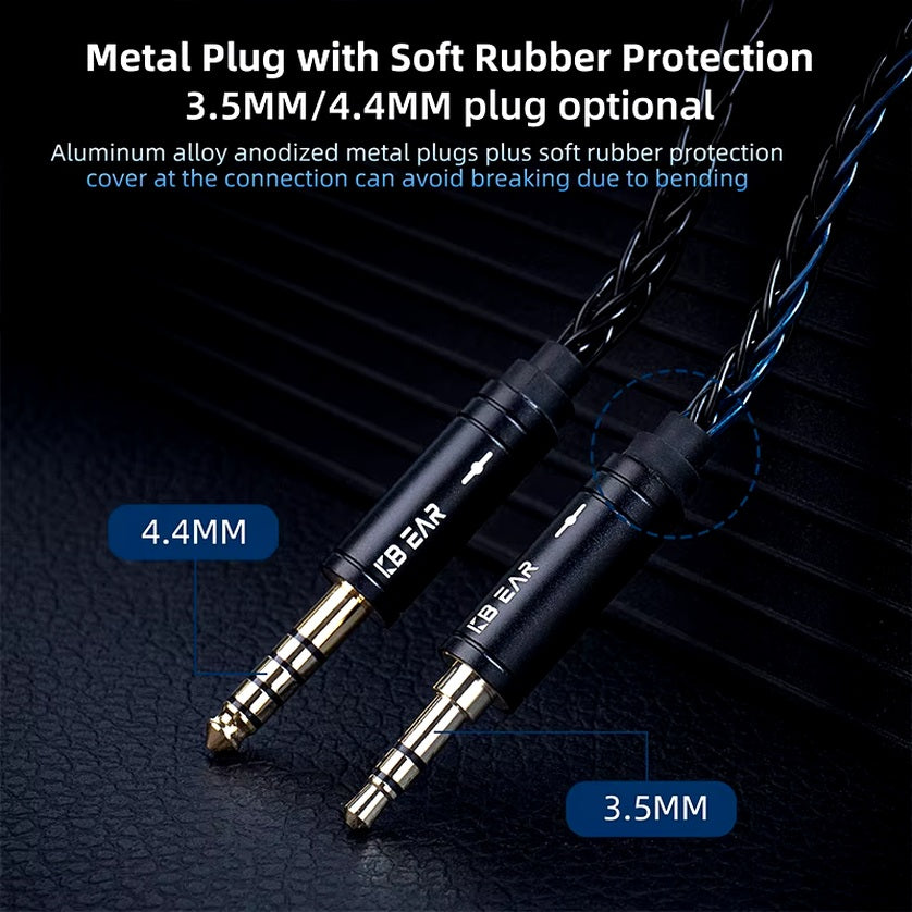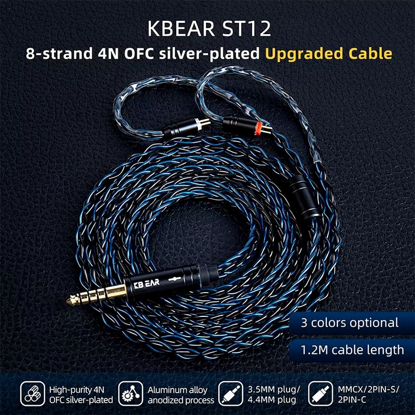 Las 8 hebras del cable de reemplazo KBEAR ST12 están recubiertos de plata para una extraordinaria transmisión de audio analógico y es compatible con reproductores y dispositivos que cuenten con una entrada balanceada de 4.4mm.